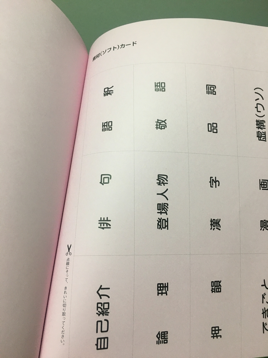 机の上に適当に並べて、面白い授業になりそうな組み合わせを考えてみてもいいでしょう。